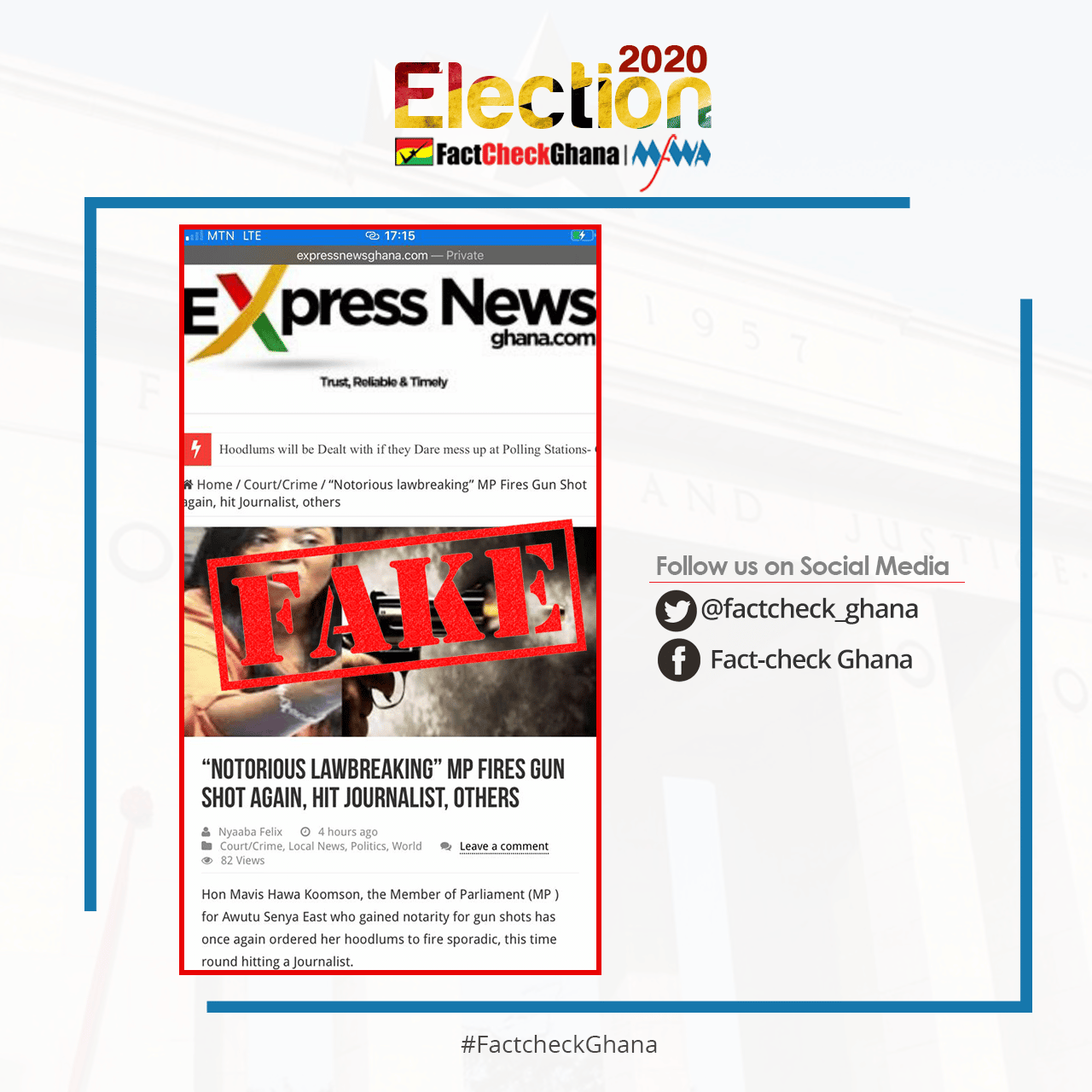 Although there was a shooting incident in the constituency on the day of voting, this was not carried out by Ms. Hawa Koomson as published by the news portal.